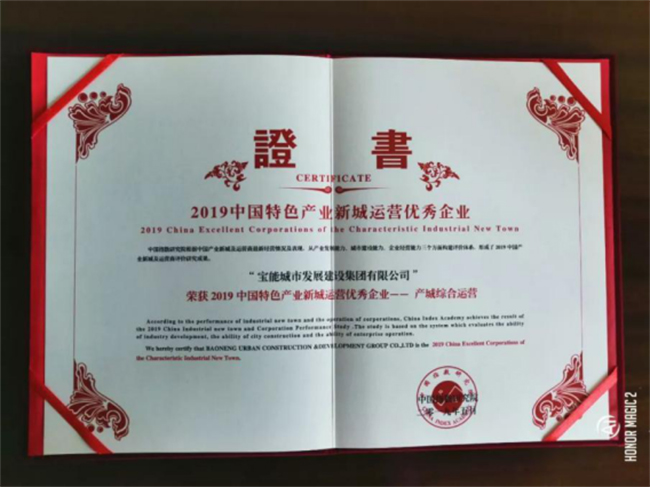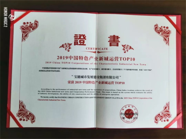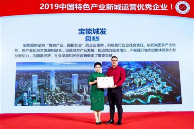 2019年5月23日,由国务院发展研究中心企业研究所、清华大学房地产研究所和中指研究院三家单位联合举办的“2019中国产业新城运营商研究成果发布会”在北京金融街威斯汀大酒店隆重举行。宝能城发集团凭借强大的企业实力和卓越的产城融合综合运营能力在此次发布会上荣膺“2019中国特色产业新城运营优秀企业”奖、“2019中国特色产业新城运营TOP10”奖、旗下贵阳宝能科技城荣膺“2019中国产业运营优秀项目”奖。