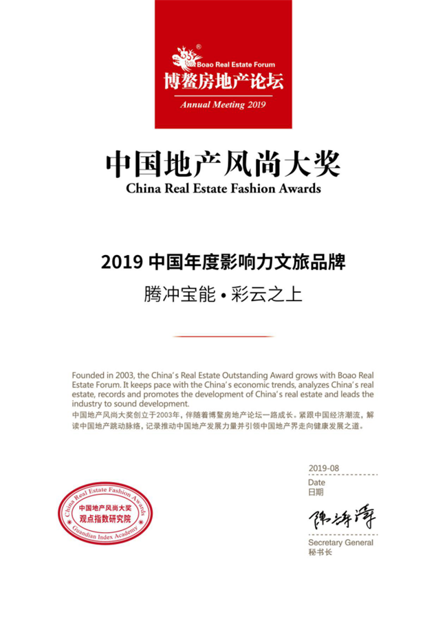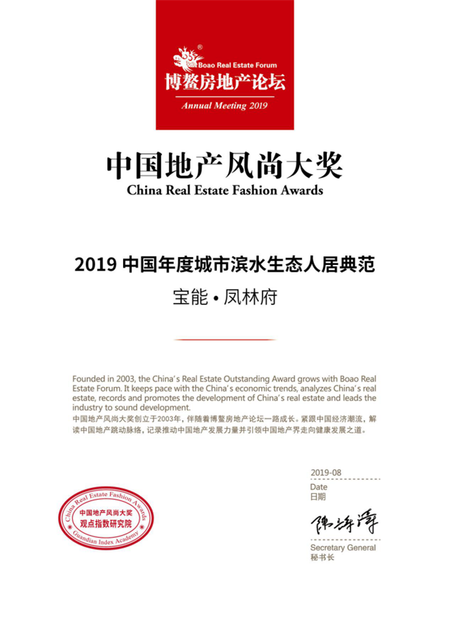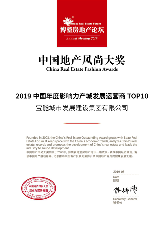 群英荟聚,对话未来。8月6日-8月9日,“2019年博鳌房地产论坛”在海南三亚盛大召开,众多地产大咖、房企菁英代表齐聚,聚焦房地产行业发展现状,洞见地产行业发展趋势。在本次论坛上,凭借雄厚的企业实力、领先的产城运营综合能力,宝能城市发展建设集团荣膺“2019中国年度影响力产城发展运营商TOP10”,旗下绍兴宝能·凤林府荣获“2019中国年度城市滨水生态人居典范”、腾冲宝能·彩云之上荣获“2019中国年度影响力文旅品牌”。