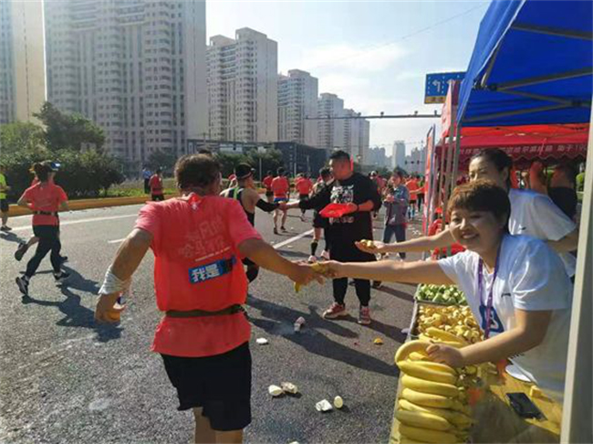 宝能人以饱满热情为哈马保驾护航,为市民、跑友送去清凉