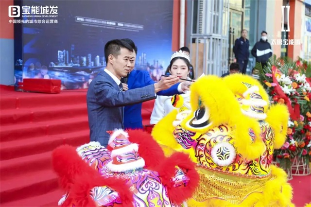 致辞结束后,寓意祥瑞的彩狮来到城市展厅前,陈彦顺总为祥狮完成点睛仪式,预祝太原宝能城顺风胜意、盛况长虹。之后城市展厅开放盛典,迎来盛大剪彩,至此太原宝能城展厅开放仪式圆满礼成。