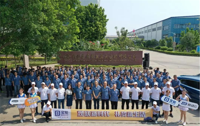 巡礼车手们和宝能昆山新能源汽车制造基地的宝能员工一起合唱《我和我的祖国》,通过歌声传达对祖国的热爱。