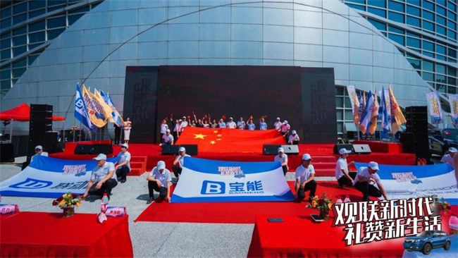 在现场交旗仪式环节上,本次全国巡礼活动的亲历者,派出了车手代表将飘扬在国之疆土、四面八方的旗帜进行交接。这一面面旗帜承载着宝能人对于祖国母亲的无限热爱,它们不仅仅是一份责任的证明,更代表着一份温暖的传递。