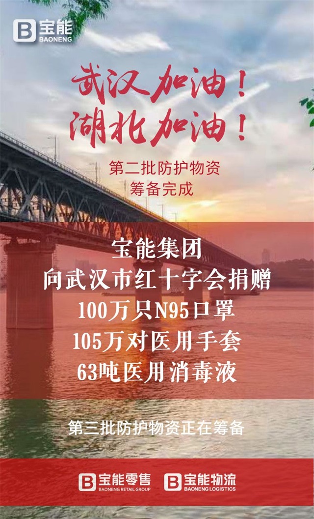 自新冠肺炎疫情爆发以来,宝能集团充分发挥集团在物资采购和物流领域的优势进行部署,多措并举支持疫情防控工作。据了解,宝能集团及旗下企业向武汉、广东、黑龙江等地,捐赠了N95口罩、防护服、负压救护车、呼吸机等疫情防控物资及设备。在这次疫情防控中,宝能集团始终坚持“发展产业,回报社会”的企业使命,秉承“以人为本、敢为人先”的理念,以实际行动倾力支援,为打赢疫情防控阻击战贡献力量。