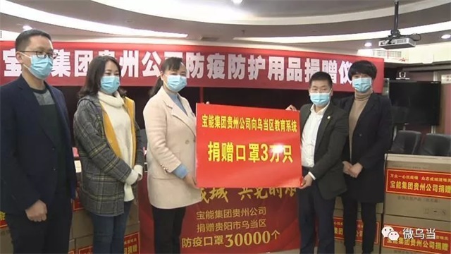 3月11号,乌当区初三、高三年级即将开学之际,为支持帮助乌当区教育系统实现安全开学、按时复课,宝能集团向区教育系统捐赠3万个口罩。区委常委、宣传部长欧阳晓莉出席捐赠仪式。